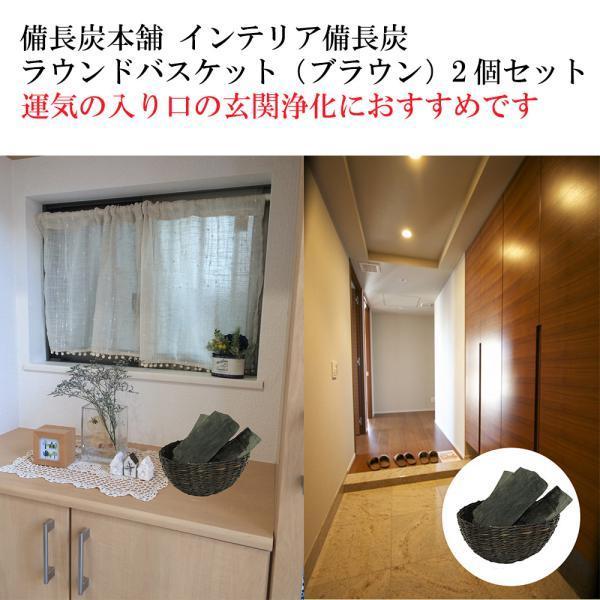 インテリア備長炭 浄化 玄関 風水 炭 消臭 調湿 除湿用 手編みラウンド型バスケット 2個セット ダークブラウン 送料無料 ナラヤ オークショップ